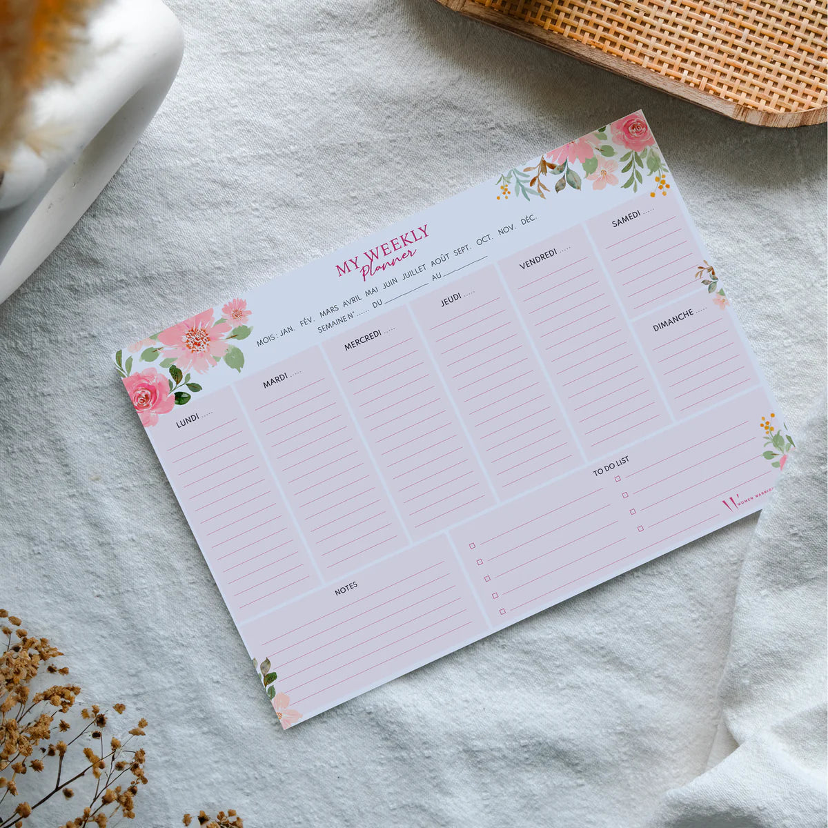 Le bloc-notes Weekly Planner à garder sur votre bureau ou à aimanter sur le Frigo ! Vous pourrez y noter votre menu de la semaine, vos rendez-vous, vos taches pro ou perso, à vous de choisir !
